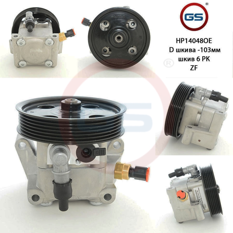 Насос ГУ. Шкив 6PK. Диаметр шкива 124мм, выход высокого давления без резьбы. ZF
